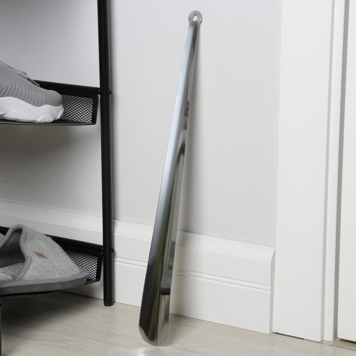 Ложка для обуви Доляна, с кольцом, металлическая, 45×4,5 см, нержавеющая сталь