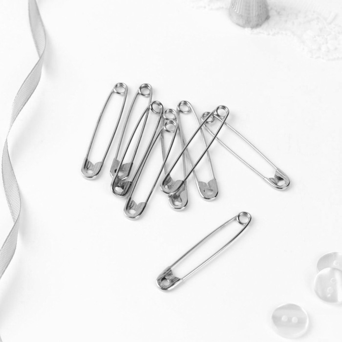 Булавки английские, 55 мм, 10 шт, цвет никель