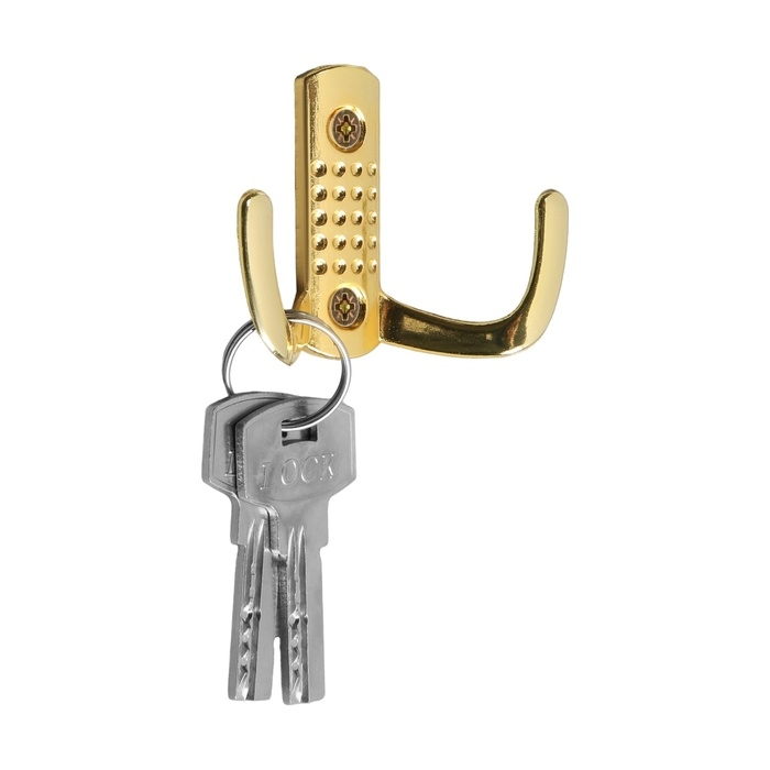Крючок мебельный ТУНДРА TKD011, двухрожковый, золото