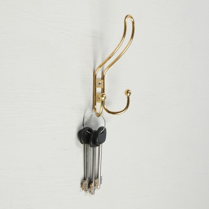 Крючок мебельный ТУНДРА TKT002, трехрожковый, золото