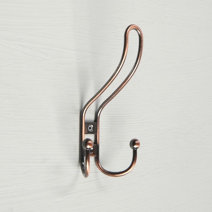 Крючок мебельный ТУНДРА TKD017, двухрожковый, медь