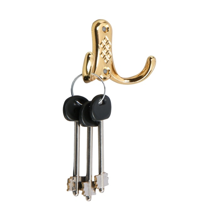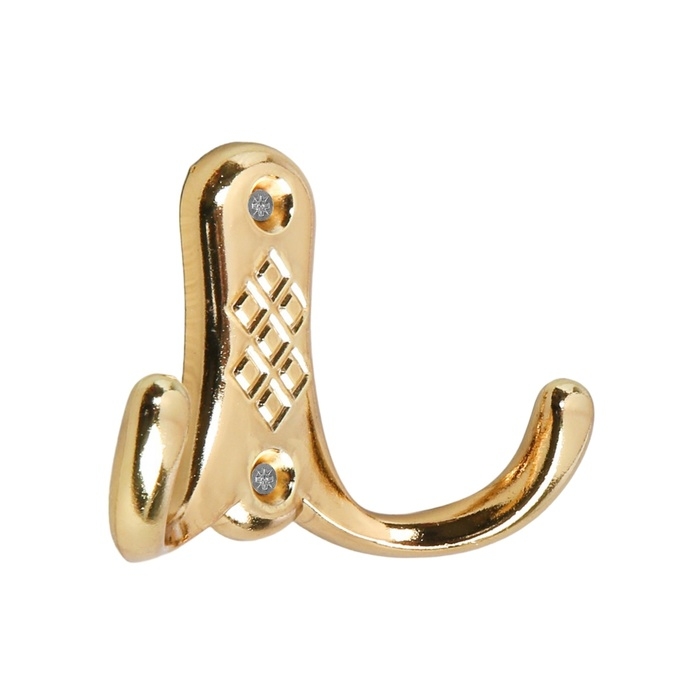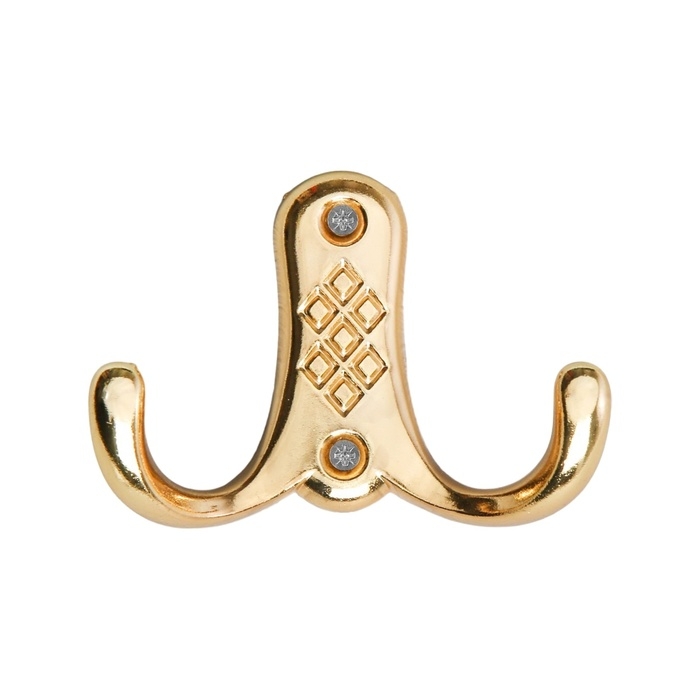 Крючок мебельный ТУНДРА TKD024, двухрожковый, золото