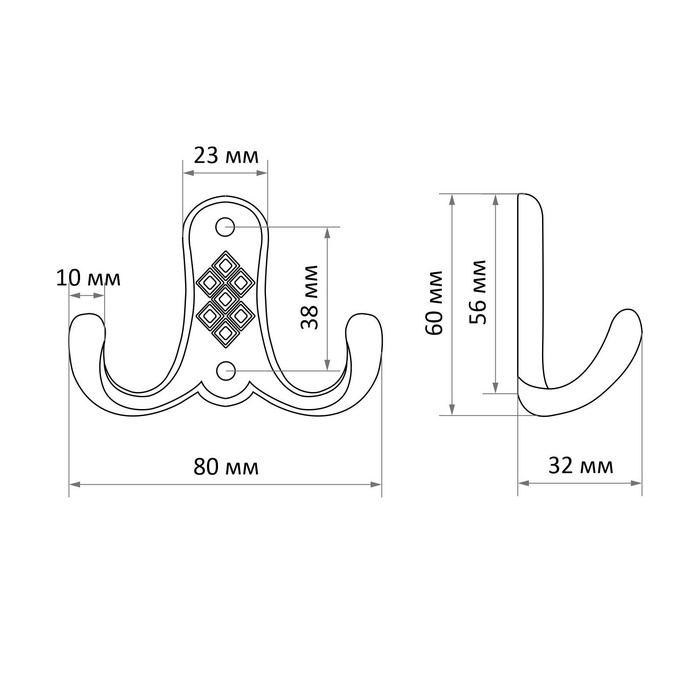 Металлический двухрожковый крючок поможет вам организовать порядок в доме. Данная фурнитура предназначена для хранения одежды, аксессуаров и других вещей.