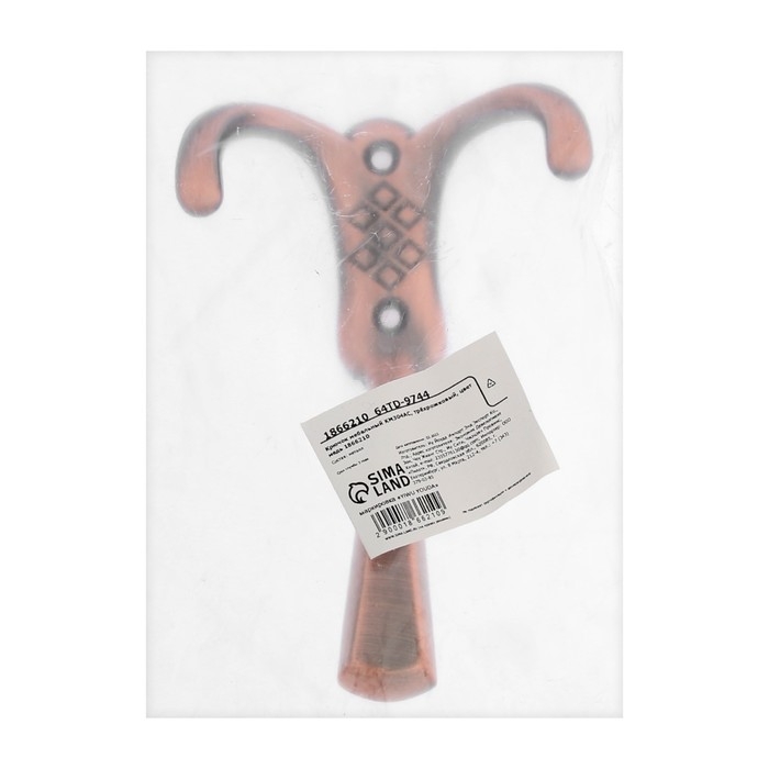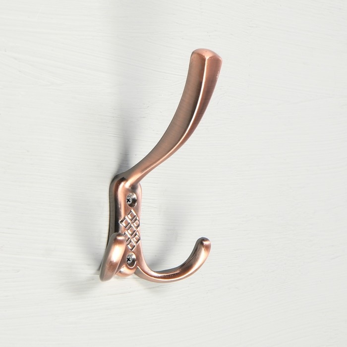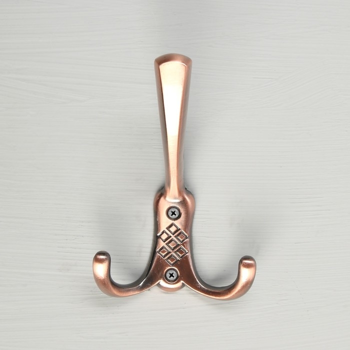 Крючок мебельный ТУНДРА TKD017, двухрожковый, медь