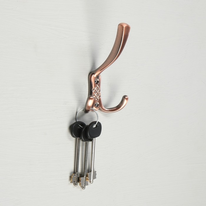 Крючок мебельный ТУНДРА TKT003, трехрожковый, медь