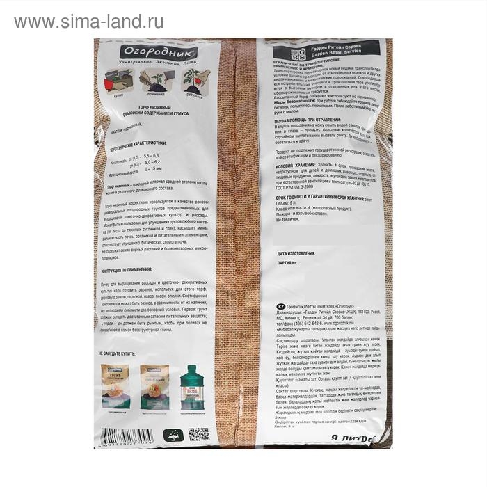 Торф Огородник низинный, 9 л