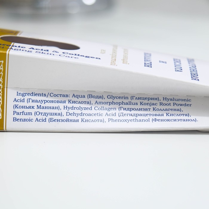 Состав: Aqua (Вода), Glycerin (Глицерин), Hyaluronic Acid (Гиалуроновая Кислота), Amorphophallus Konjac Root Powder (Коньяк Маннан), Hydrolyzed Collagen (Гидролизат Коллагена), Parfum (Отдушка), Dehydroacetic Acid (Дегидрацетовая Кислота), Benzoic Acid (Бензойная Кислота), Phenoxyethanol (Феноксиэтанол).
