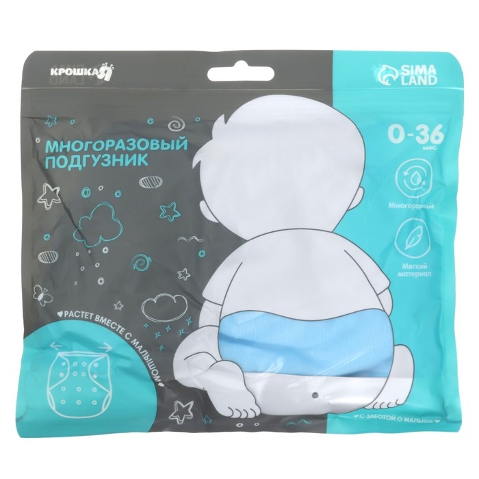 Многоразовый подгузник, 3-15 кг, цвет голубой, Крошка Я