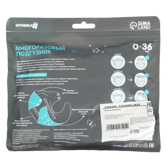 • Размер подгузника универсальный, подходит для детей от 3 до 15 кг, от рождения до 3 лет;