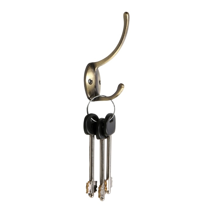 Крючок мебельный ТУНДРА TKD012, двухрожковый, бронза