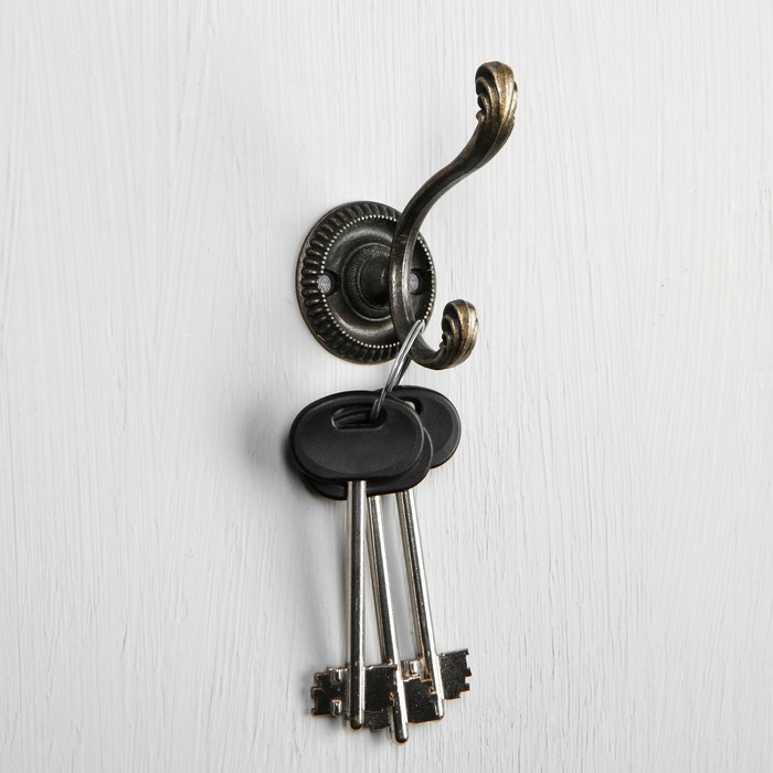 Крючок мебельный ТУНДРА TKD013, двухрожковый, бронза