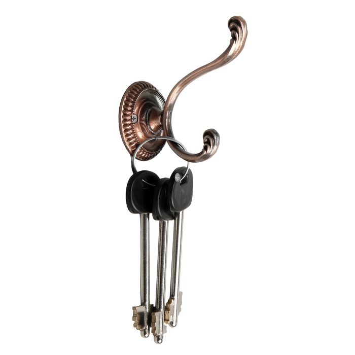 Крючок мебельный ТУНДРА TKD017, двухрожковый, медь