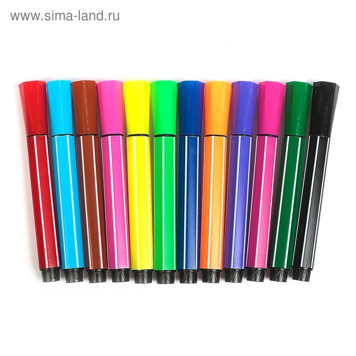 Фломастеры 12 цветов, толстые, в картонной коробке, вентилируемый колпачок
