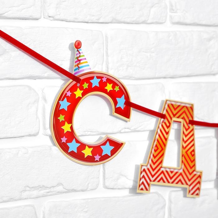 Гирлянда на ленте «С Днём Рождения!", красная, дл. 250 см., 200 гр/кв.м
