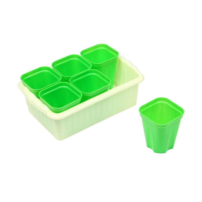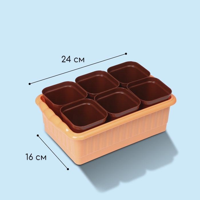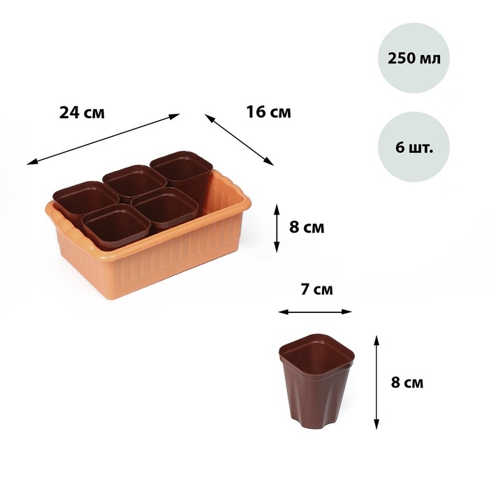 Набор для рассады: стаканы по 250 мл (6 шт.), контейнер 24 × 16 см, МИКС