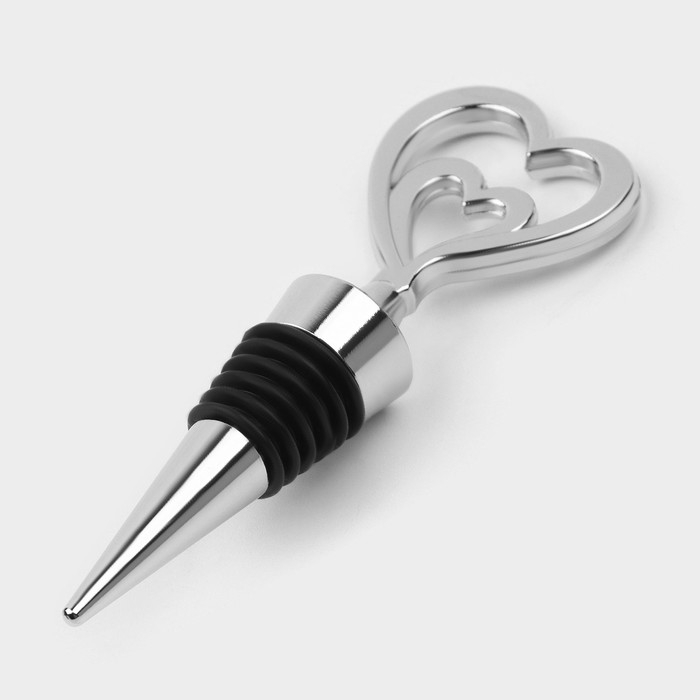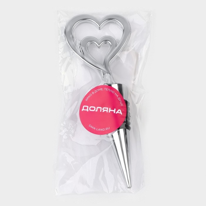 Пробка для бутылки Доляна «Двойное сердце», 11,5 см, цвет серебристый