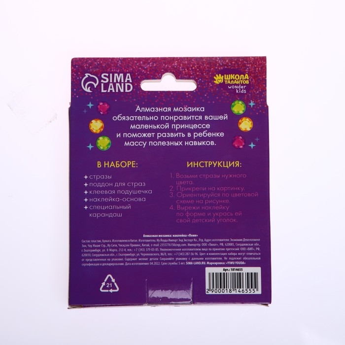 Алмазная мозаика наклейка для детей «Пони», 10 х 10 см. Набор для творчества