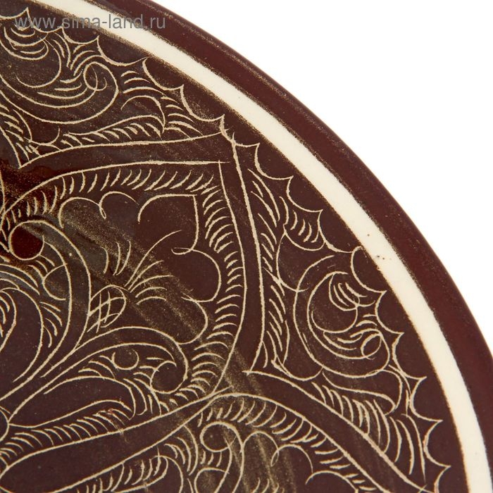 Тарелка Риштанская Керамика "Узоры", коричневая, глубокая, 20 см
