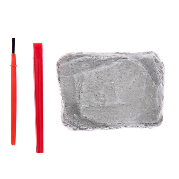 В наборе есть кисточка, долото, гипсовый объект с мумией фараона внутри.