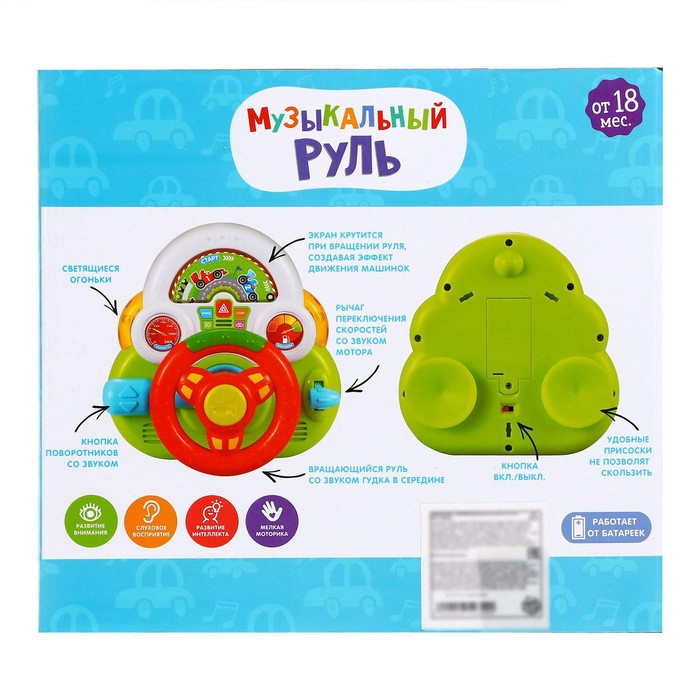 Музыкальный руль «Машинки», световые и звуковые эффекты, работает от батареек