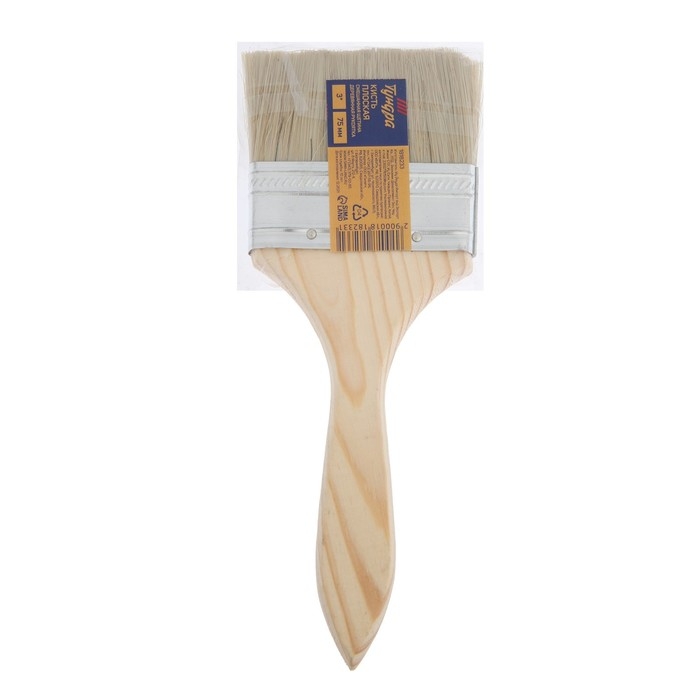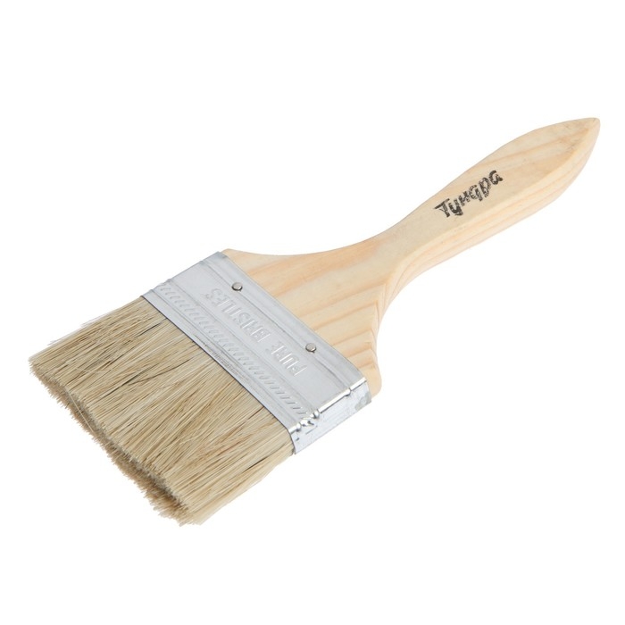 Кисть плоская ТУНДРА, смешанная щетина, деревянная рукоятка, 3", 75 мм