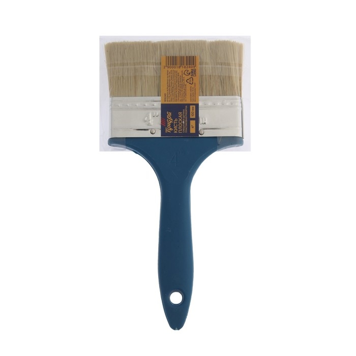 Кисть плоская ТУНДРА, смешанная щетина, пластиковая рукоятка, 4", 100 мм