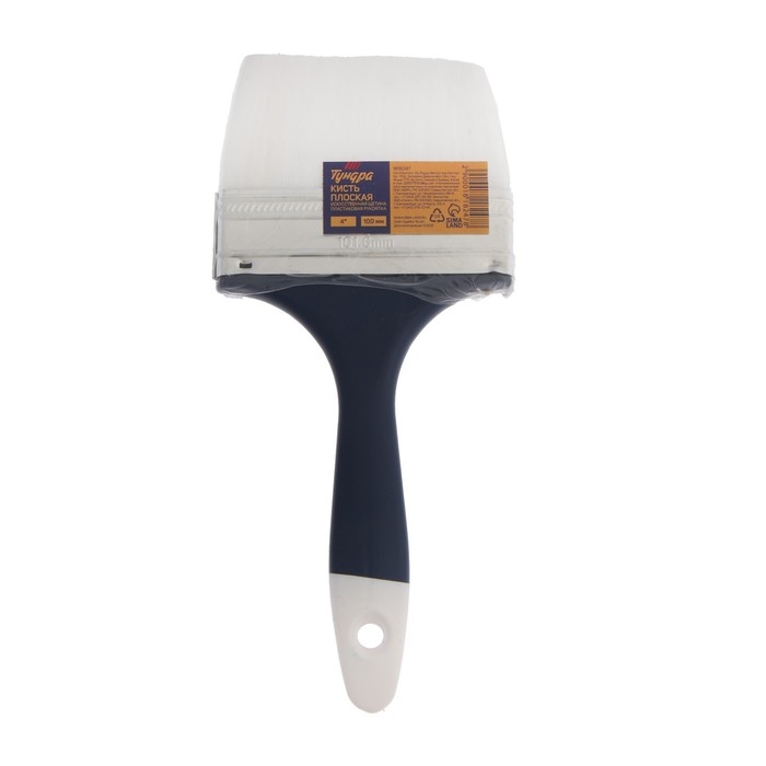 Кисть плоская ТУНДРА, искусственная щетина, пластиковая рукоятка, 4", 100 мм