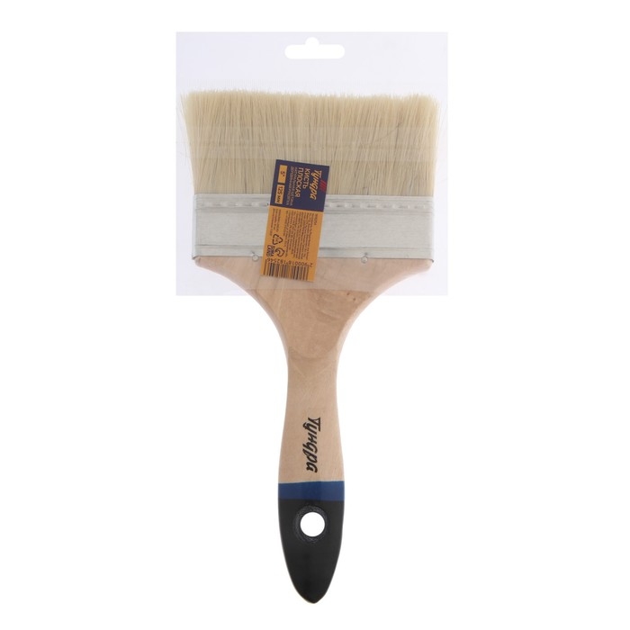 Кисть плоская ТУНДРА, смешанная щетина, деревянная рукоятка, 4", 100 мм