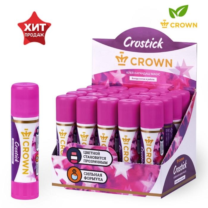 Клей-карандаш 15 г Crown Indicator PVP, с цветным индикатором