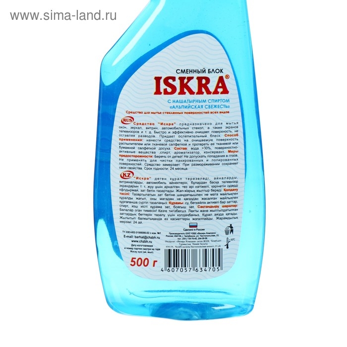 Средство для мытья стёкол и зеркал Barhat Iskra, альпийская свежесть, с нашатырным спиртом, без распылителя, 500 мл