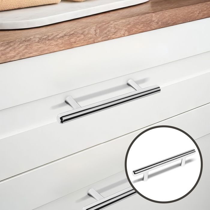 Металлическая ручка-рейлинг устанавливается на фасады ящиков тумб или комодов.