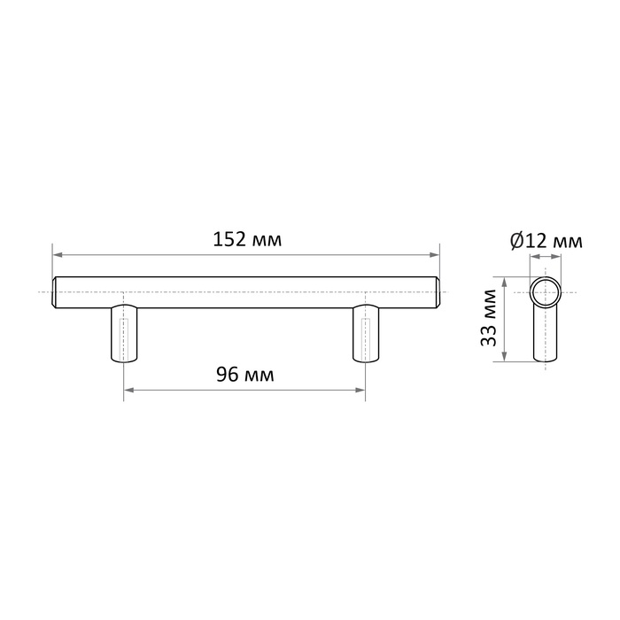 Ручка-рейлинг ТУНДРА BISTRO, d=12 мм, м/о 96 мм, цвет сатиновый никель
