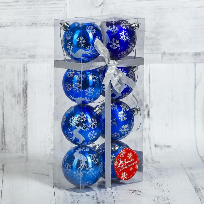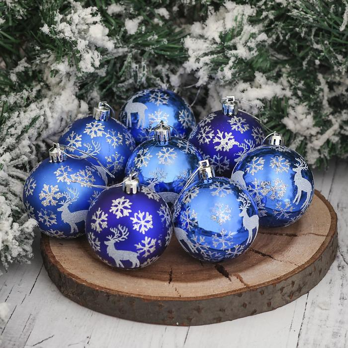 Набор шаров пластик d-6 см, 8 шт "Северный олень" синий