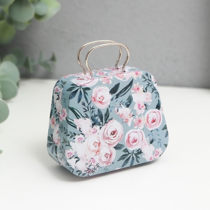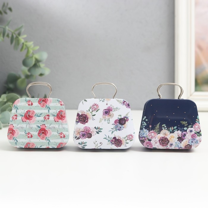 Шкатулка металл сумочка "Цветочная" МИКС 5,5х7х3 см