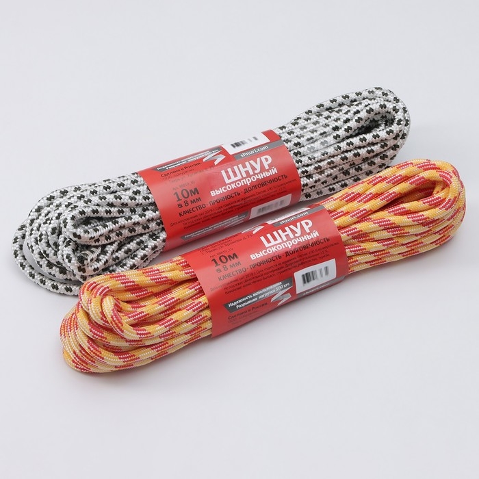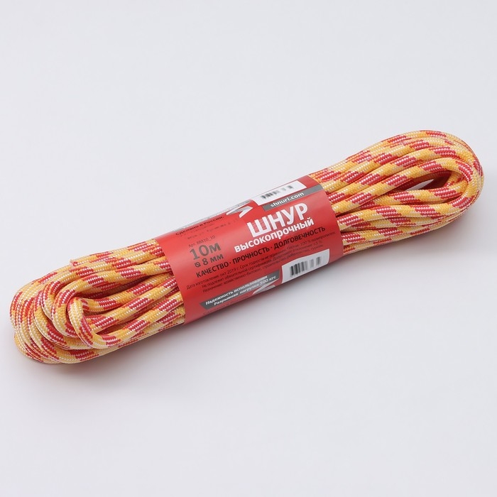Шнур высокопрочный, d=8 мм, 10 м, цвет МИКС