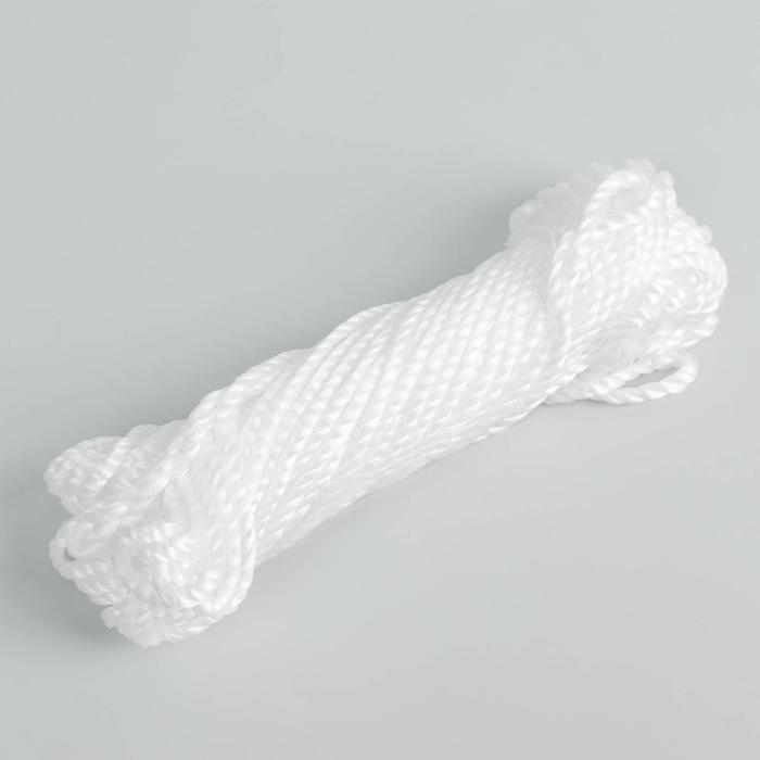 Шнур витой 3-х прядный ПП, d=5 мм, 20 м, цвет белый