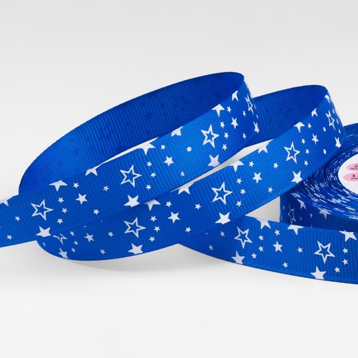 Лента репсовая «Звёздочки», 15 мм, 23 ± 1 м, цвет синий