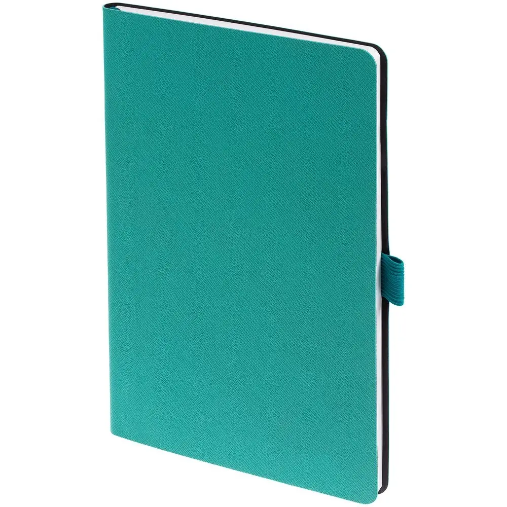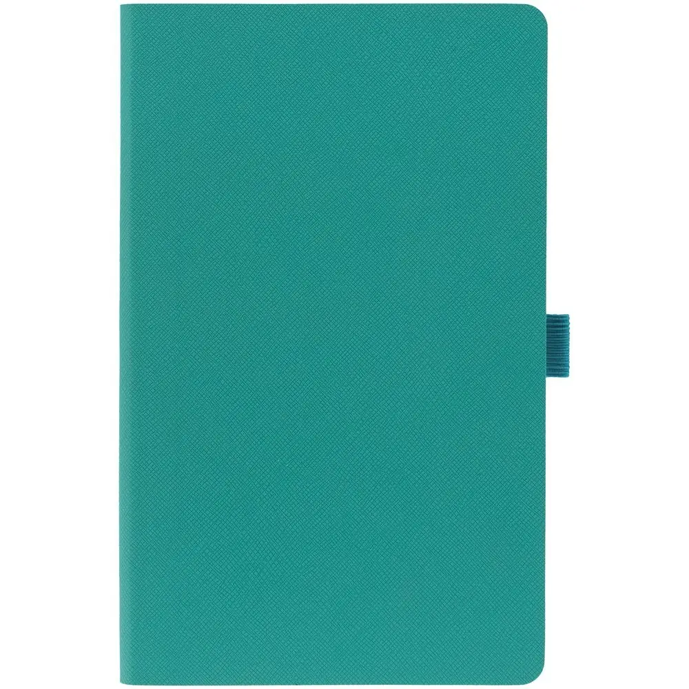 Ежедневник с гибкой обложкой, выполнен из материала Nice Touch, морская волна II, дополнен цветными ляссе и петлей-резинкой для ручки.