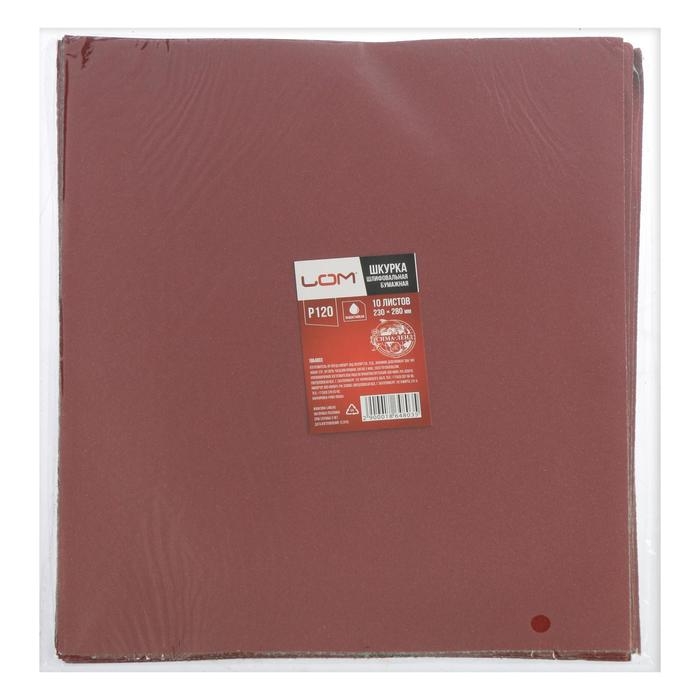 Шкурка шлифовальная в листах ЛОМ, на бумажной основе водостойкая, 230 х 280, Р120, 10 шт.