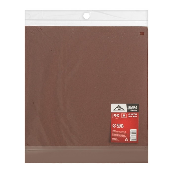 Шкурка шлифовальная в листах ЛОМ, на бумажной основе водостойкая, 230 х 280, Р240, 10 шт.