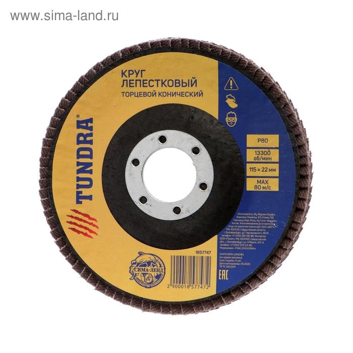 Круг лепестковый торцевой конический ТУНДРА, 115 х 22 мм, Р80