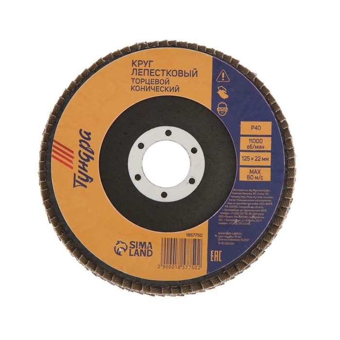 Круг лепестковый торцевой конический ТУНДРА, 125 х 22 мм, Р40