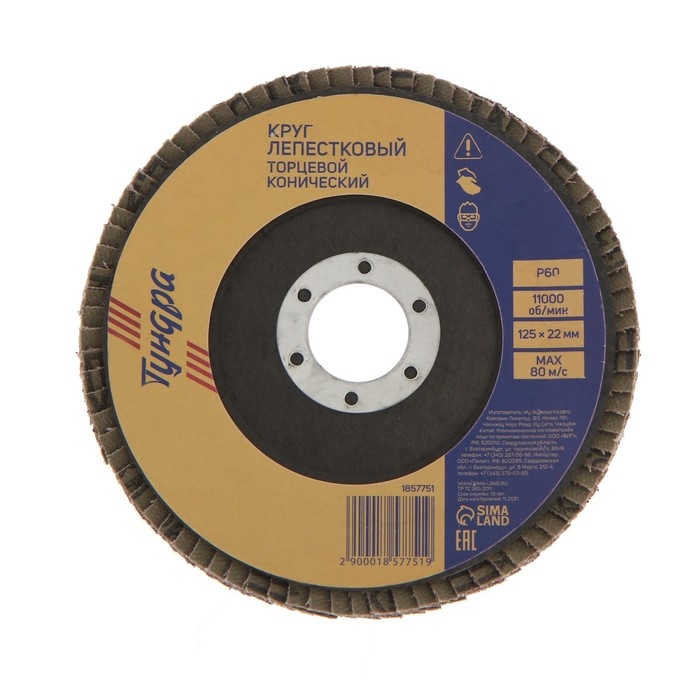 Круг лепестковый торцевой конический ТУНДРА, 125 х 22 мм, Р60