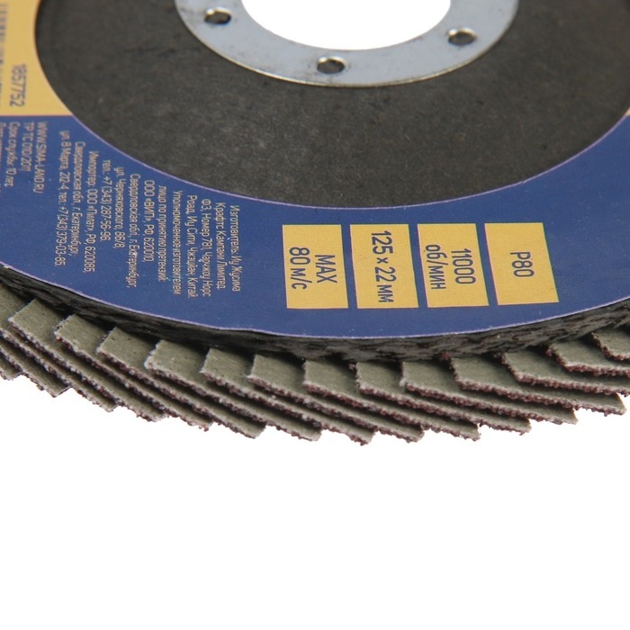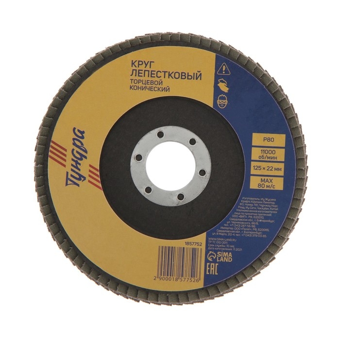 Круг лепестковый торцевой ТУНДРА, циркониевый (по нержавеющей стали), 125 х 22 мм, Р80