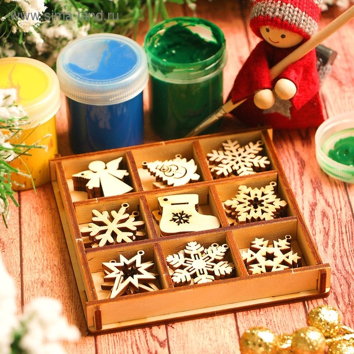 Набор заготовок для творчества «Ёлочные игрушки», 6 видов, 18 шт, размер 4х4 см