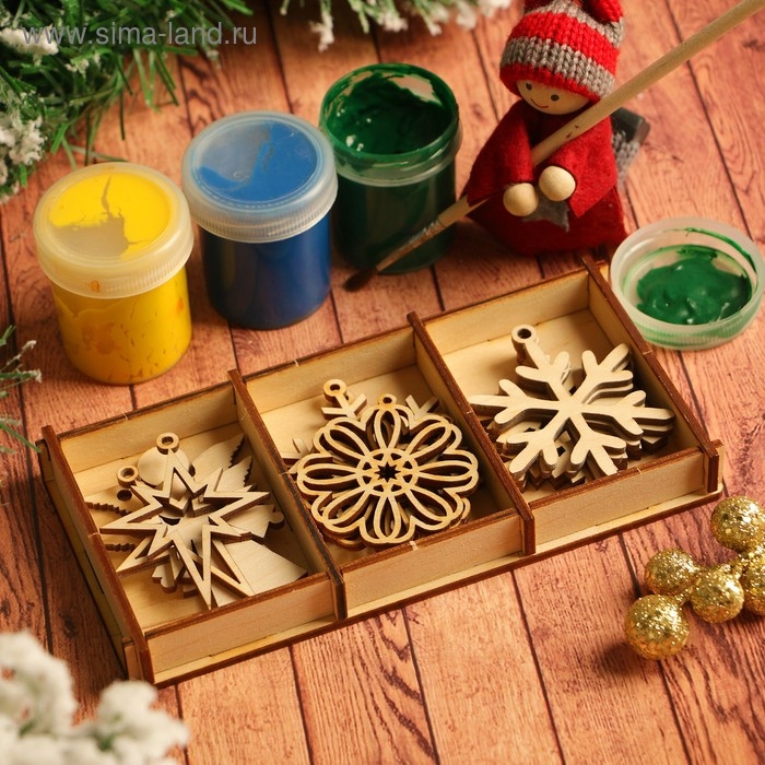 Набор заготовок для творчества «Ёлочные игрушки», 6 видов, 18 шт, размер 4х4 см