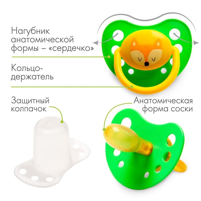 Соска - пустышка латексная анатомическая «Милые зверята», от 0 мес., с колпачком, цвет МИКС