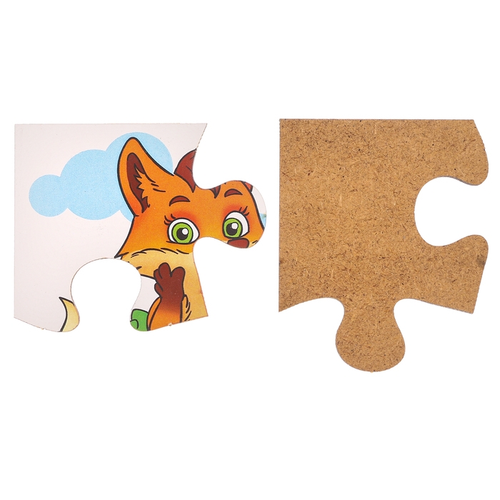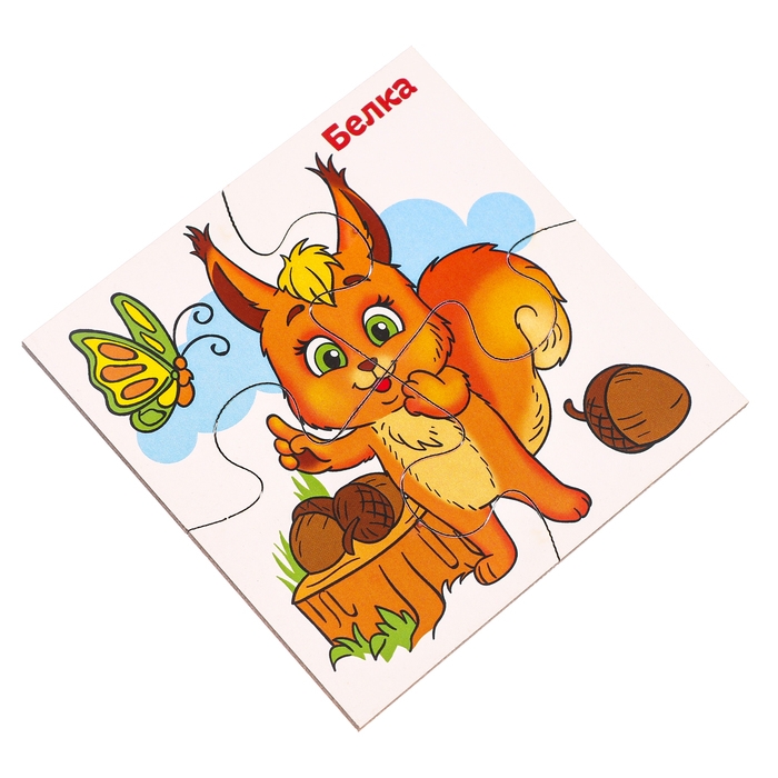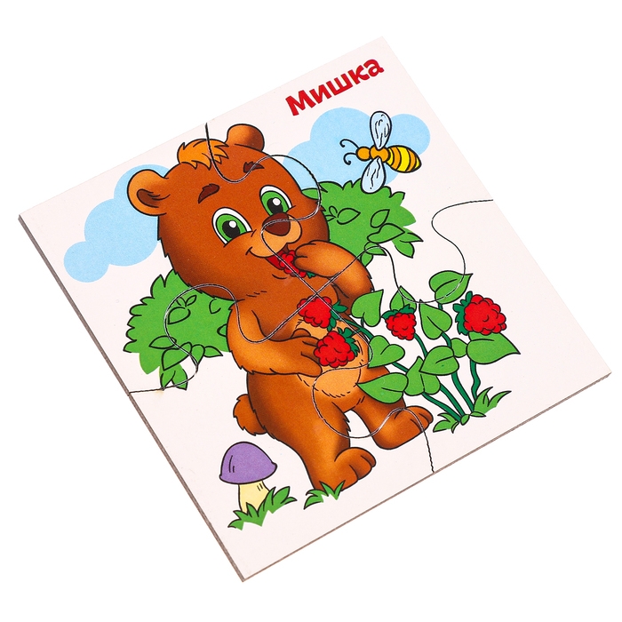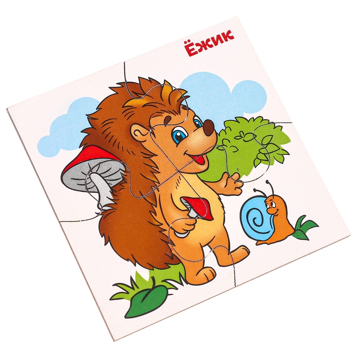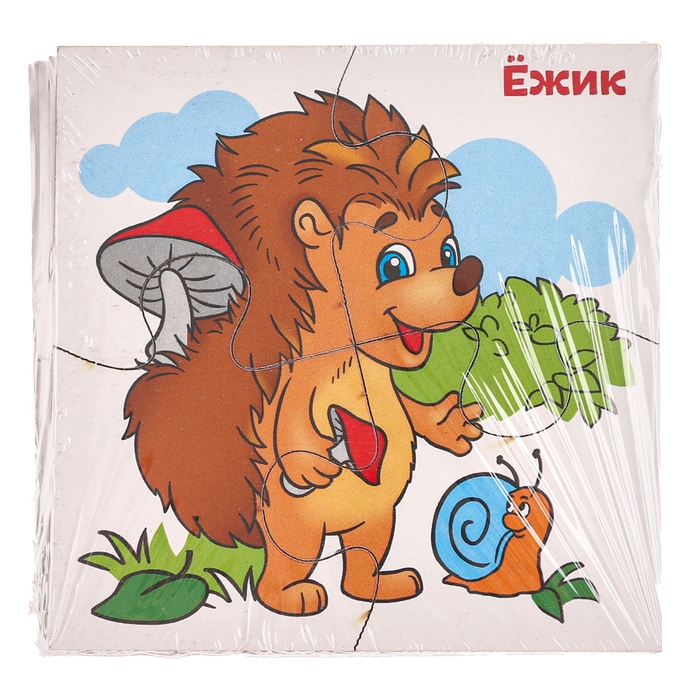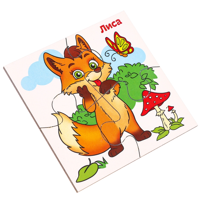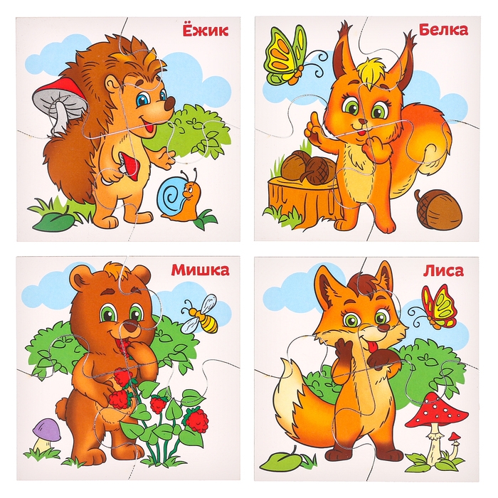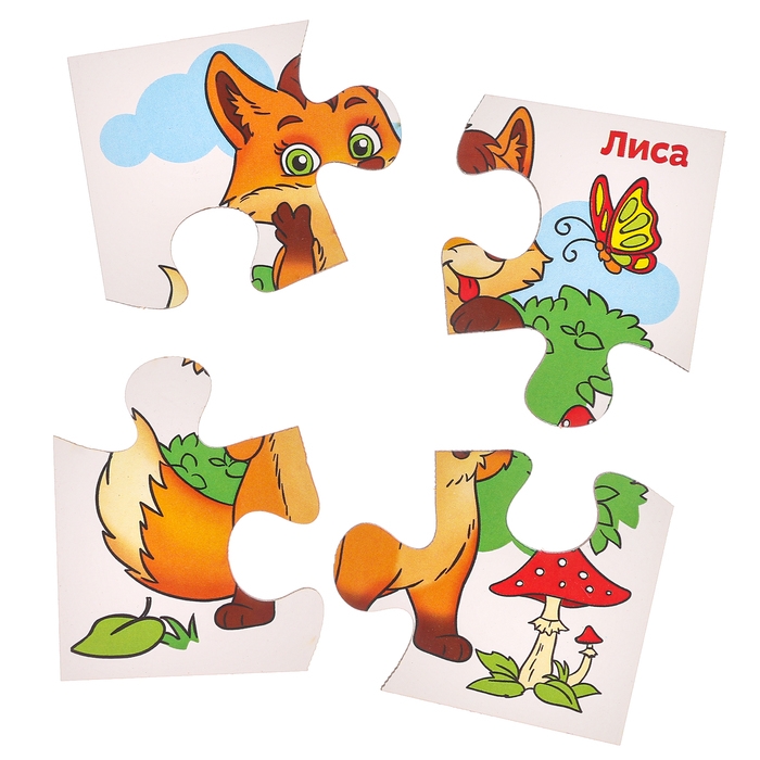 Яркий пазл подойдёт для самых маленьких деток, каждый их них состоит из четырёх элементов. Насыщенные цвета потренируют зрительное восприятие крохи. Расскажите ребёнку о лесных животных — это поможет развить кругозор малыша.