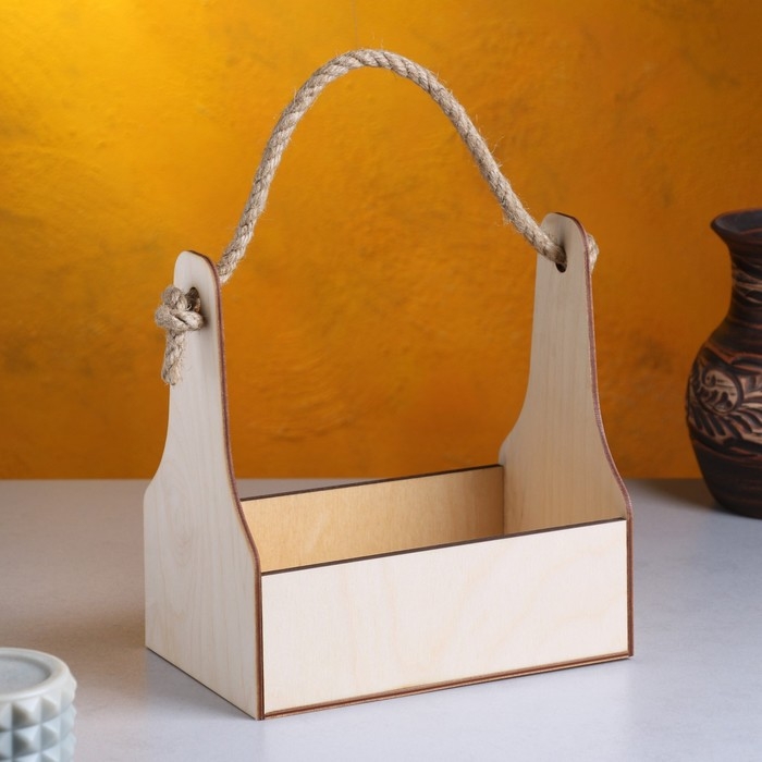 Кашпо деревянное 20×12.5×20 см Стелла Моно, ручка верёвка, натуральный Дарим Красиво