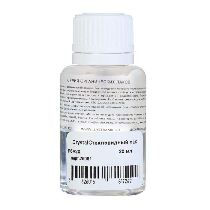Лак стекловидный глянцевый LUXART CrystalPolish, 20 мл, спиртовая основа, не липкий